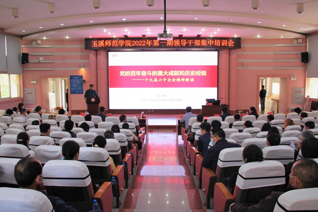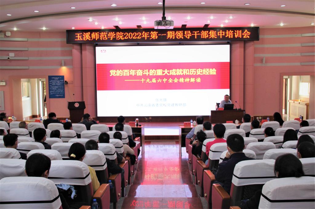 为深入学习习近平新时代中国特色社会主义思想,从严从实加强干部教育管理监督,引导党员干部特别是年轻干部对党忠诚、牢记初心使命,形成崇廉尚廉的良好风尚,激发干事创业、跨越奋进的精气神。根据《玉溪师范学院2022年领导干部培训方案》,4月22日下午在科学讲堂举行2022年第一期领导干部集中培训暨“万民党员进党校”培训,全校中层及以上领导干部(含非实职领导)、院长助理参加了活动。