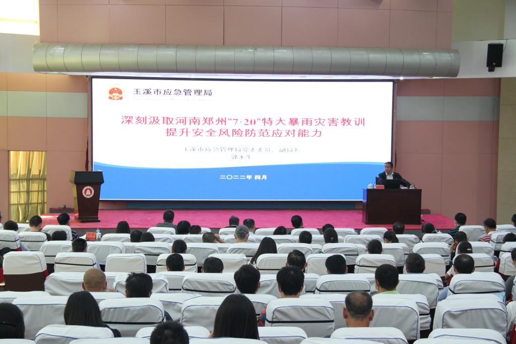 本次培训邀请玉溪市应急管理局党委委员、副局长郭永生,以“深刻汲取河南郑州“7·20”特大暴雨灾害教训提升安全风险防范应对能力”为题,围绕“灾害情况及主要教训、认真贯彻落实习近平总书记关于防范风险挑战、应对突发事件重要论述、突发事件应急处置与救援、提升应对各类风险挑战能力”四个方面进行了深刻解读。