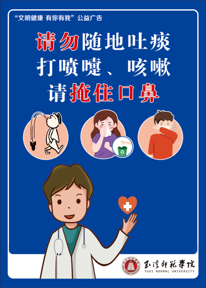 结合当前疫情防控形势,学校三个大门出入口处新增了“请勿随地吐痰打喷嚏、咳嗽请掩住口鼻”的文明提示语,提醒大家:疫情防控,人人有责。