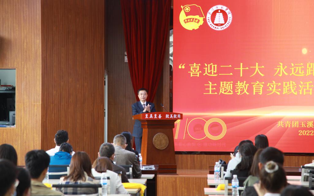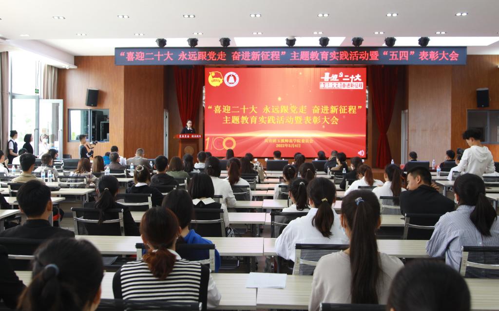 5月4日,玉溪师范学院 “喜迎二十大 永远跟党走 奋进新征程”主题教育实践活动暨五四表彰大会在学生会堂召开。校党委副书记葛平,组织部、宣传部、学工部负责人,各学院党委副书记、团委书记、团学干部、新团员代表,校团委全体人员130余人参加。会议由校团委副书记余家赛主持。