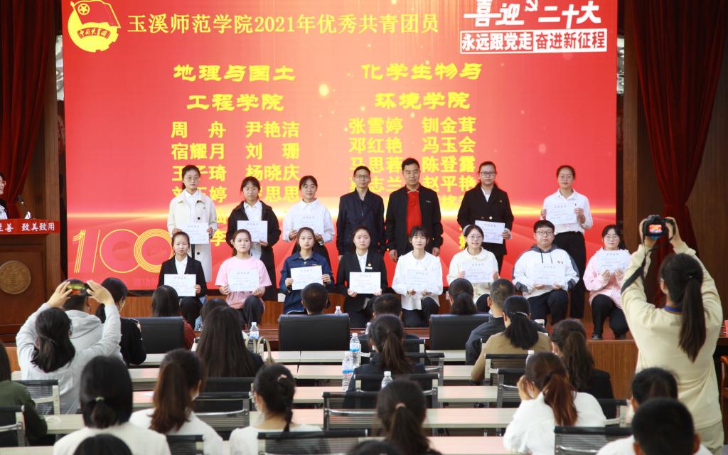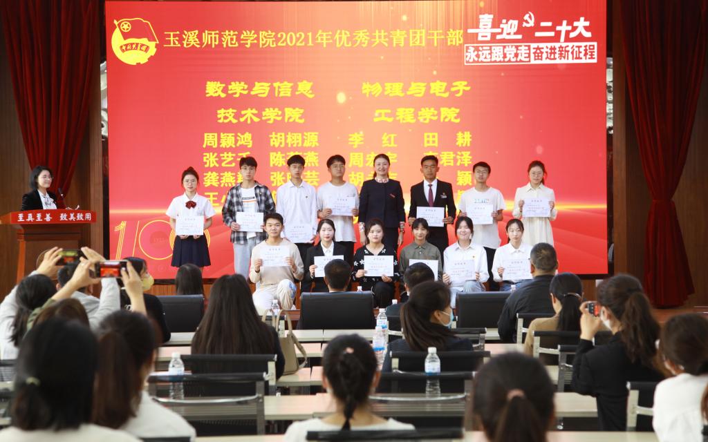 校团委书记徐印芳宣读《关于表彰玉溪师范学院2021年度“五四红旗团委”“五四红旗团支部”“优秀共青团干部”“优秀共青团员”的决定》。