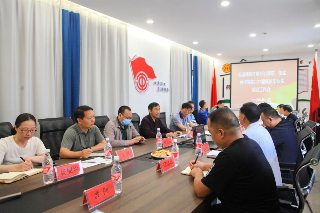 玉溪市昭通商会会长朱恒星,党支部书记周义,常务副会长刘文富,秘书长李云春,副秘书长虎列,副会长李磊、宗靖淞、郑吕,相关工作人员等参加座谈,座谈会围绕化解人才供需矛盾,推动产学研结合,深化校政企合作,提高人才培养质量,助力毕业生就业展开。