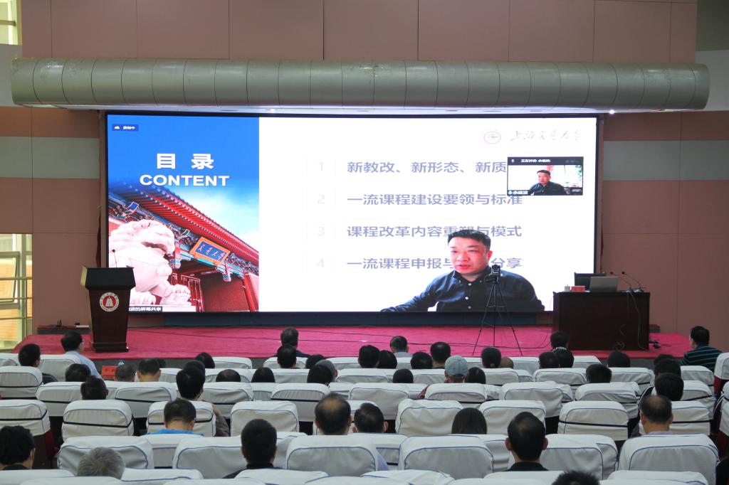 上海交通大学余建波教授以《国家一流课程建设理论与实践》为题,围绕“新教改、新形态、新质量”“一流课程建设要领与标准”“课程改革内容重点与模式”“一流课程申报的分享”四个方面展开详细解读,并结合国内高校具体的申报案例,为我校一流课程申报提供了很多可借鉴的宝贵经验。