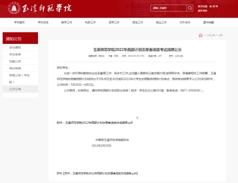 4月18日至5月20日,项目办全面利用学校玉师青年微信公众号、校园网等各类媒体阵地,全方位多角度宣传西部计划,让我校毕业生充分了解西部计划。经过宣传动员,299名毕业生通过玉溪师范学院大学生西部计划管理系统成功报名,154人通过资格审核。为保障因疫情未返校学生的考试权利,项目办认真研究、科学谋划,针对在校考生和未返校考生,形成两套考试方案和两套试卷,通过“线上+线下”相结合的方式,有序完成笔试和面试环节,最大程度满足了学生考试需求。截至5月31日,项目办已顺利完成考试组织、试卷批阅、成绩公示等各项工作。