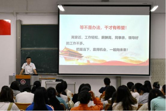 学校领导带头做好政策及就业形势宣讲,加强毕业生的就业观念教育,抓好就业政策宣讲和求职能力教育,引导毕业生降低就业预期。4月21日,党委书记张学武、副校长杨光以《奋进新时代 一起向未来》为题开展毕业生就业思政大课,充分分析了疫情影响下的就业形势和毕业生思想状况,将思想教育、疫情防控、日常管理和就业服务等有机结合,教育毕业生树立“先就业再择业”的就业观,“小我融入大我,青春献给祖国”的职业观,鼓励毕业生多元化就业。