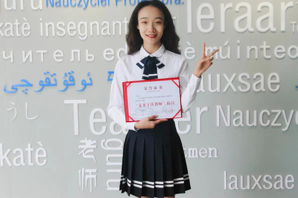 记者手记:“成功的花,人们只惊慕她现时的明艳!然而当初它的芽儿,浸透了奋斗的泪泉....”和施宇学姐接触的时间不多,有幸成为她从学生到教师蜕变的讲述者,对她的讲述或多或少存在偏颇,但她对梦想执着的追求,对生活阳光的态度,对时间精准的管理,对母校深深的感情,都值得我们认真学习。四年光景转瞬即逝,美好青春一去不回。希望每一个奋斗的青春,都能到达理想的彼岸,希望施宇学姐在人生卷轴上,继续书写属于自己的美丽华章。