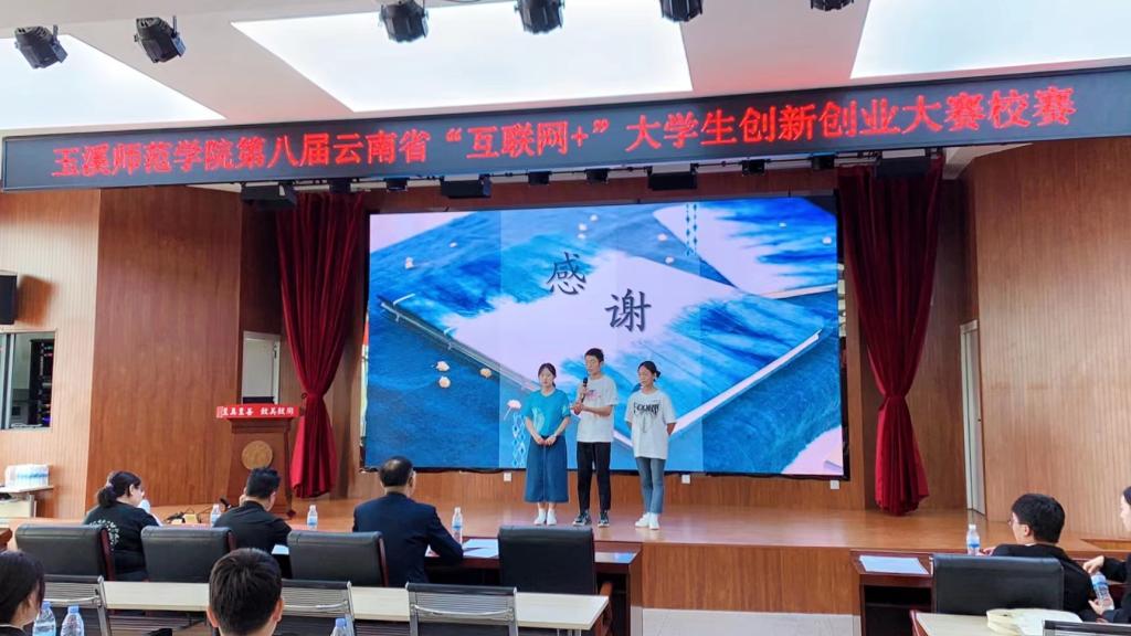 6月17日,玉溪师范学院第八届“互联网+”大学生创新创业大赛校级决赛在大学生活动中心顺利举行。本次大赛经校赛组委会专家评审团,从全校322个项目中经过网络初审,评选出45个项目晋级校级终审决赛。