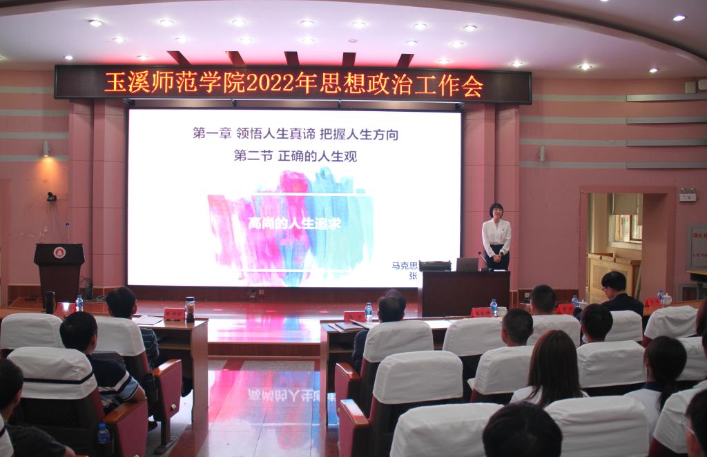 为全面落实立德树人根本任务,切实提升学校思想政治教育工作水平和质量,加快构建学校思想政治工作体系,6月23日上午十点半,学校2022年思想政治工作会在科学讲堂召开,会议以“深化思政教育 提升育人实效”为主题,由校党委副书记葛平主持会议。