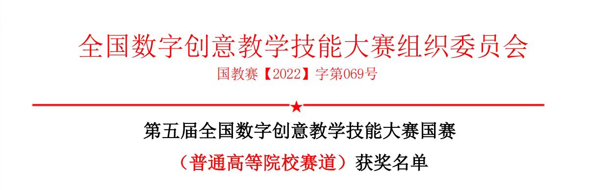 近日,从中国好创意暨全国数字艺术设计大赛网站获悉,我校美术学院马静老师在第五届全国数字创意教学技能大赛中获得全国总决赛二等奖。全国数字创意教学技能大赛由全国高等院校计算机基础教育研究会、全国数字创意教学技能大赛组委会主办,中国电子视像行业协会数字影像创意委员会协办,该赛事已连续举办5届,入选教育部中国高等教育学会发布的《全国普通高校教师教学竞赛榜单》,在数字媒体、艺术设计、信息技术、视觉艺术、短视频、动画、产品设计、环艺设计等专业领域里获得了广泛的影响力。