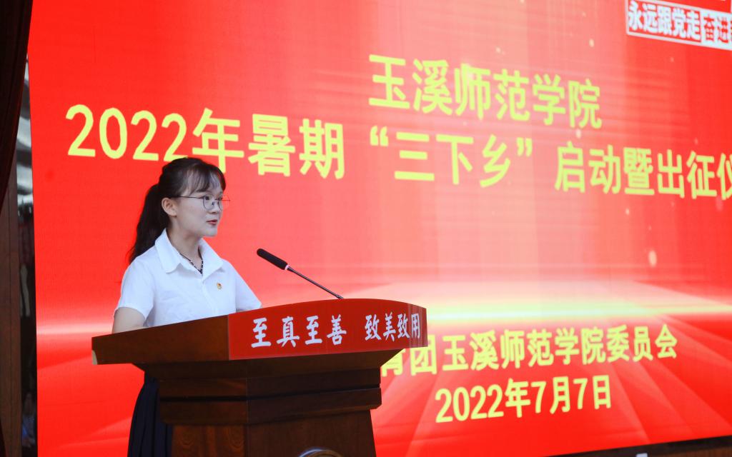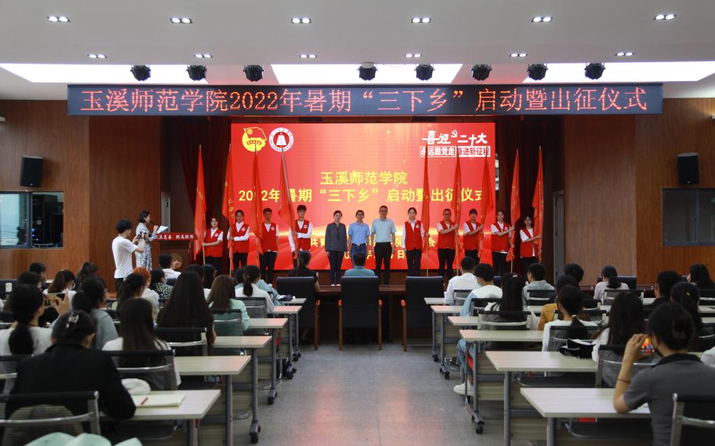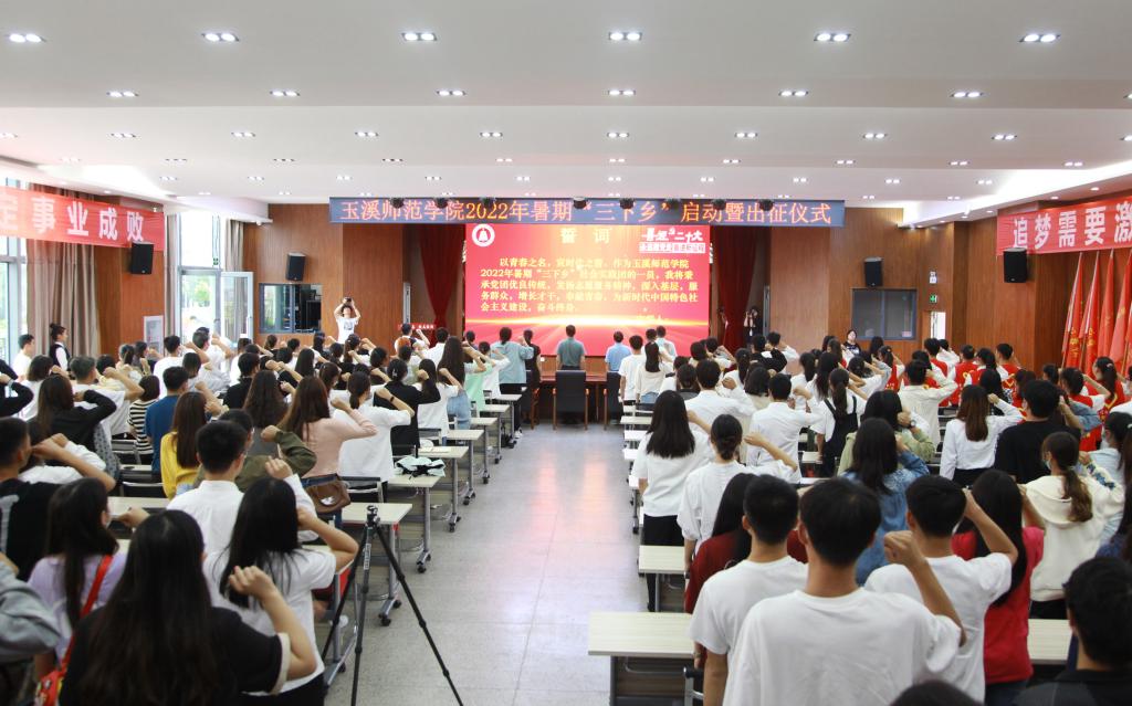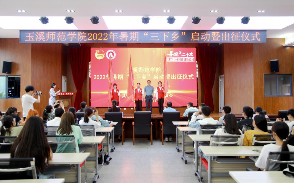 为引导和帮助广大青年学生上好理论与现实相结合的“大思政课”,以优异成绩迎接党的二十大胜利召开,7月7日下午,玉溪师范学院2022年暑期“三下乡”社会实践动员大会暨出征仪式在学生会堂举行。校党委副书记张亚辉,学校教育发展基金会、宣传部、教务处负责人,各学院团委书记、实践团成员代表以及校团委全体人员共计150人参加。会议由校团委副书记余家赛主持。