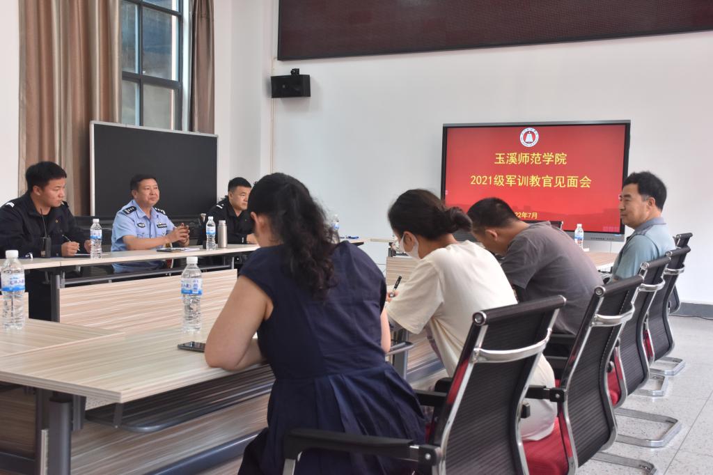 上午10时30分,我校武装部全体成员和承训单位领导在大学生活动中心201会议室会面,双方就本次军训流程、方式、军训教官团后勤保障等受训细节和具体工作进行统筹安排并亲切交流。