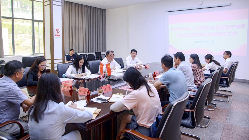 为深入一线察实情,纾困解难办实事,凝心聚力促发展,2022年8月9日,云南省人力资源和社会保障厅党组书记、厅长杨榆坚率队到玉溪师范学院调研指导工作。杨榆坚厅长一行深入走访调研了玉溪师范学院“云南省网络安全重点实验室”、湄公河次区域民族民间文化传习馆、聂耳和国歌研究院等,在马克思主义学院会议室举行座谈。