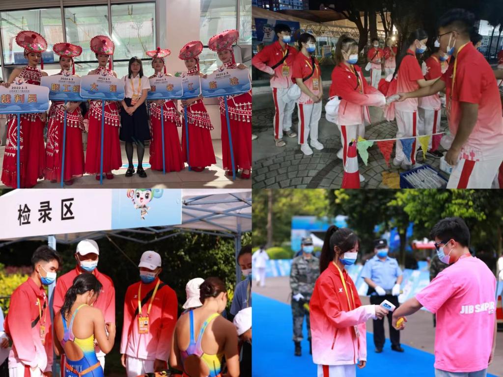 7月16日至8月16日,云南省第十六届运动会青少年组比赛在玉溪举行。作为支持省运会顺利举办的一支重要工作力量,在前期派出10名志愿者顺利完成圣火采集和护送任务的基础上,玉溪师范学院再次组织315名师生志愿者,为省运会青少年组比赛提供赛事服务。服务于6个大项、147个小项、43类岗位的志愿者累计上岗3401人次,服务时长超31329小时,圆满完成火炬传递接力、竞赛服务、会务接待、疫情防控、医疗辅助、颁奖礼仪、新闻宣传等志愿服务,用实际行动践行了“为玉师争光,为省运增辉,为人生添彩”的庄严承诺,向省运会交上了一份优秀的“玉师答卷”。
