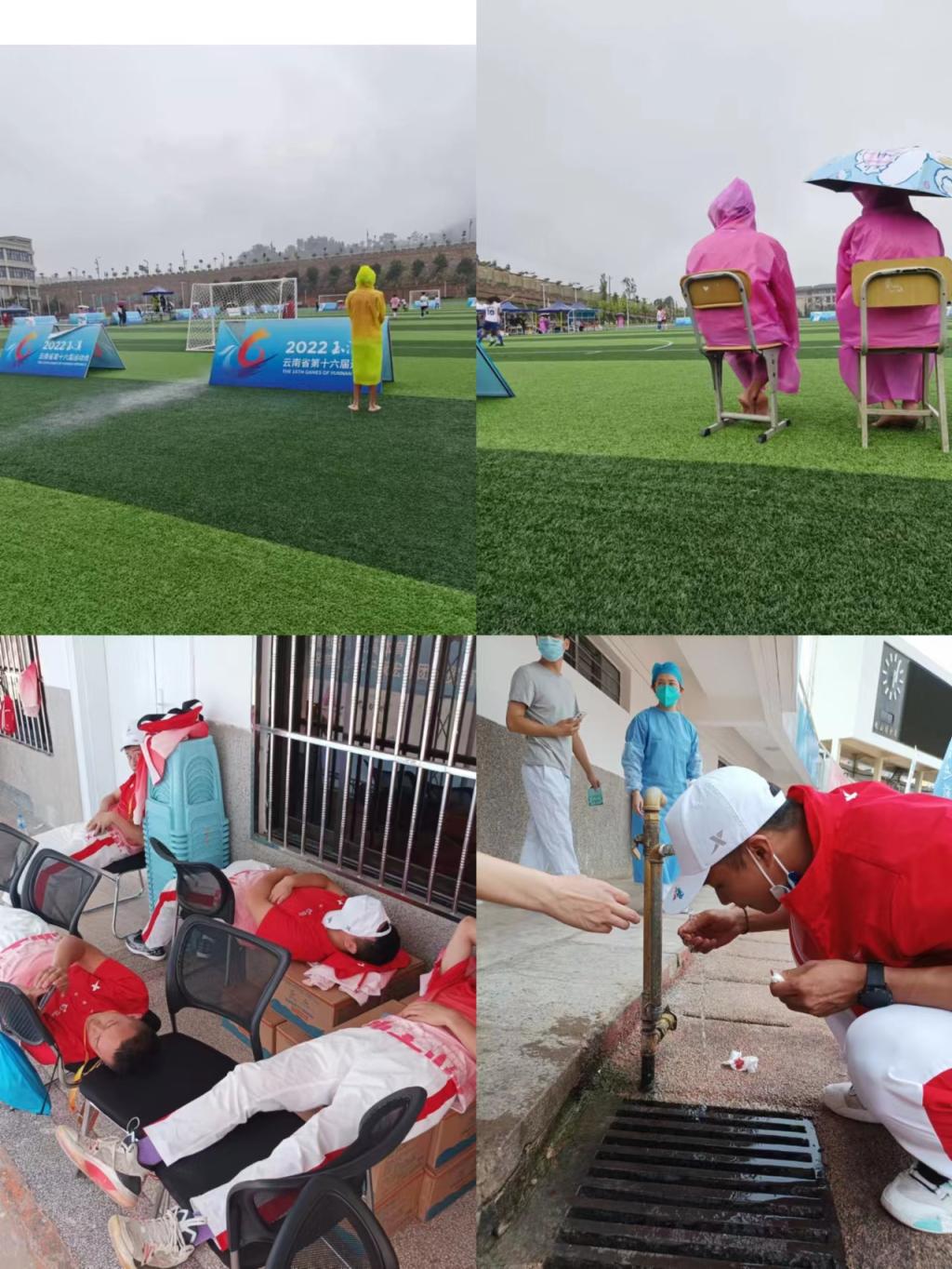 “微光”成炬,温暖省运。志愿者们用热情传递善意,用坚守表达担当,用青春赴约盛会。顶着三伏高温,他们不惧“烤”验,热到流鼻血,仰头擦干接着服务;冒着瓢泼大雨,他们赤足上阵,风里雨里保障赛事正常进行;赛程密集,中午来不及返校休息,他们就倚在墙边,躺在矿泉水箱或椅子上稍事休息,调整后继续“战斗”;遭遇头疼脑热,他们咬牙坚持,不轻言放弃;突发眩晕症晕倒送医,病情稍微好转后依旧要求上岗;受天气影响,有的赛事延迟至晚上8、9点才结束,他们就饥肠辘辘服务至运动员正常就餐后才忙得吃上一口不知该算晚饭还是宵夜的热饭……即便这样,志愿者们依旧听从指挥,服从安排,坚守岗位,始终以饱满的工作状态投身赛事服务。这样的努力和坚持让人动容,充分体现了玉溪师范学院的精神传承,也成就了玉师学子用笑容点亮赛场,用奉献定义青春的最美群像!