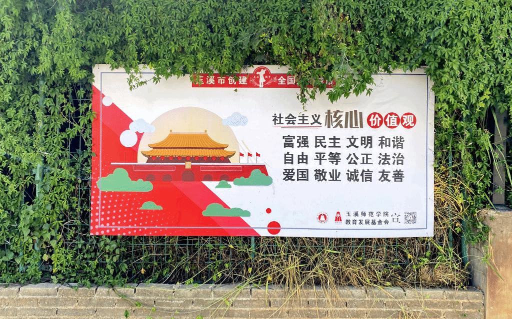 为迎接党的二十大胜利召开,抓实全国文明校园创建工作,助力玉溪市创建全国文明城市,玉溪师范学院暑期对校内创文宣传栏和部分公益广告内容进行更新。学校正以创建全国文明校园为统揽,把文明作为扮靓学校“颜值”、涵养学校气质的主抓手、主驱动,有力助推学校发展,展现玉溪师范学院的新气象、新风尚。