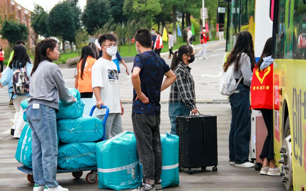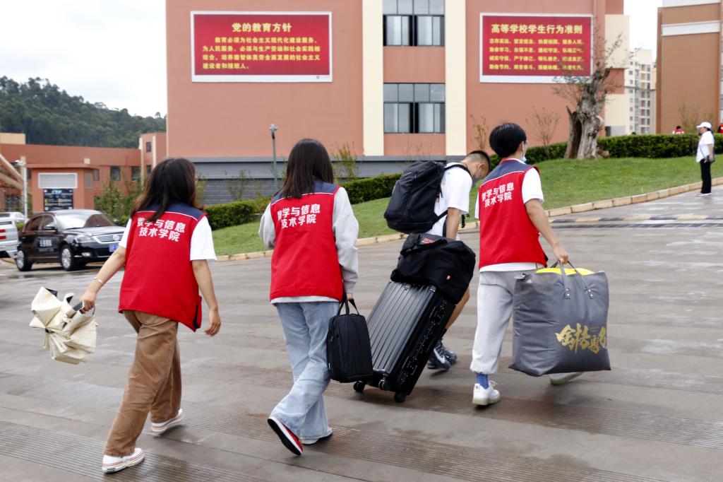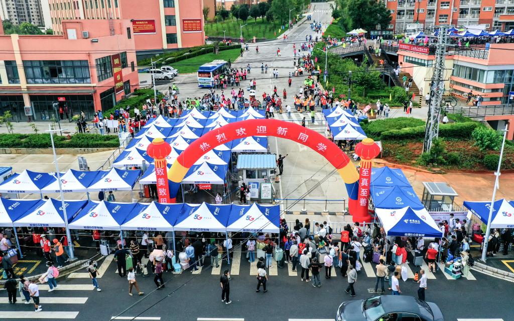 由属地公安、交警、卫健部门人员,学校各学院各部门领导、教师、后勤保障人员、学生志愿者等组成的迎新队伍,全天候保障新生开学。高铁站、汽车站、校内迎新场所,全体人员兢兢业业、各司其职,当好“螺丝钉”,全力做好服务接待、宣传引导、卫生消毒等工作;校内小道、宿舍、食堂,学生志愿者红色马甲格外醒目,大家热情洋溢、任劳任怨,用心用情服务新生。