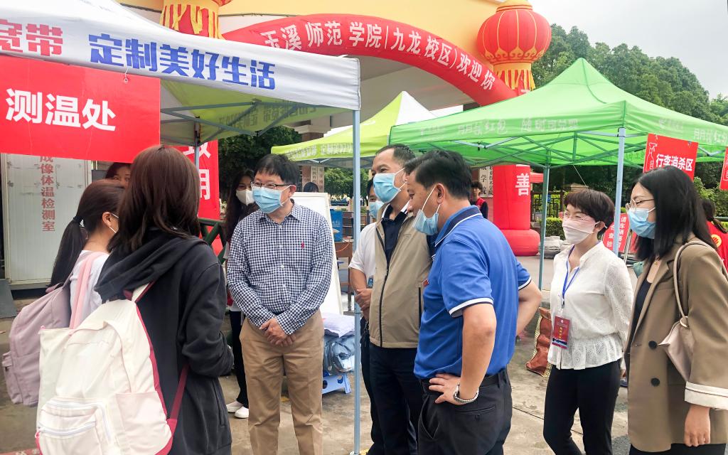 当天上午,校党委书记张学武、校长马力等校领导深入迎新现场,指挥调度开学工作,看望慰问一线工作人员,检查、指导新生报到工作,同新生及家长讲乡音、拉家常,深入了解学生情况,向家长介绍学校办学等情况并希望家长放心、安心,希望新同学尽早融入玉师生活,尽快找准方向,过充实而有意义的大学生活。