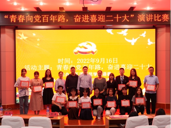 演讲比赛以“青春向党百年路,奋进喜迎二十大”为主题,于9月16日19:00在科学讲堂举行,玉溪师范学院语委办主任曹冰雪老师、马克思主义学院王锦涛老师、校团委李俊娇老师担任此次比赛评委老师。全校共14名选手参赛,并以PPT、视频等不同形式提高演讲效果,选手们铿锵有力的语言、饱含深情的肢体动作,感染了在场听众,激发了同学们的爱国、爱党情感。比赛活动结束之际,曹冰雪老师对选手们的表现进行了点评,指导了大家演讲的技巧,并鼓励大家积极锻炼,展现和提高自我。同时王锦涛老师针对演讲内容对参赛选手进行一一点评,指导大家如何提高演讲的理论性、生动性。