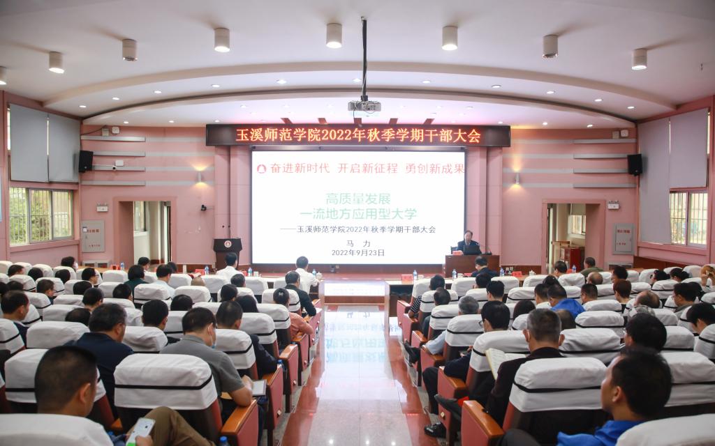 9月23日上午,玉溪师范学院在科学讲堂召开新学期干部大会,总结近期工作的主要成绩,安排部署下一步工作,并对重点工作作说明。校党委领导班子全体成员,全体科级及以上干部参会。校党委副书记张亚辉主持会议。
