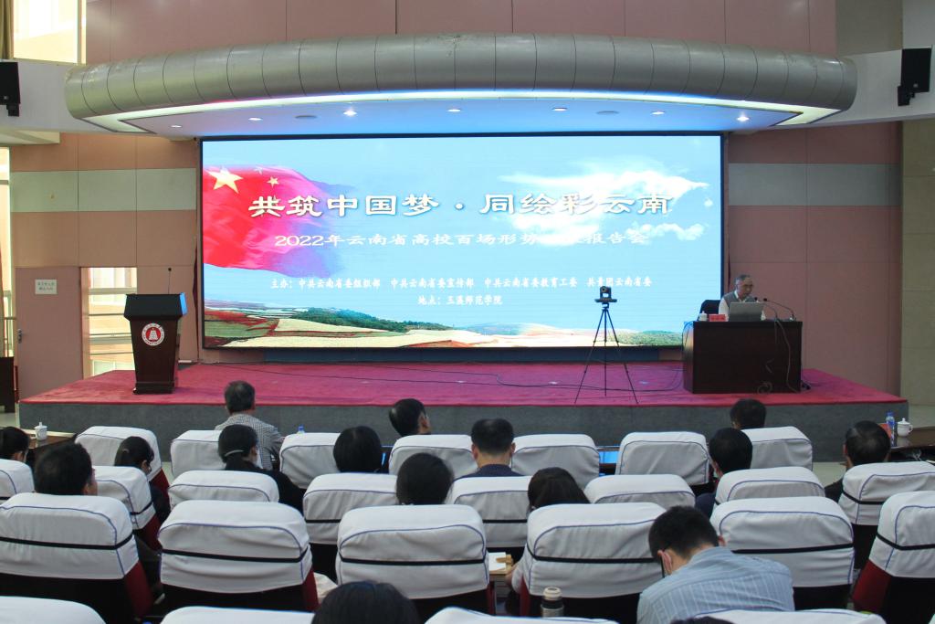 5月19日,学校举行2022年“共筑中国梦·同绘彩云南”形势政策报告会,中共云南省委党校杜琼、云南民族大学马克思主义学院二级教授张建国受邀作报告。全校科级及以上领导干部(含非实职领导)、院长助理、支部书记等参加了报告会。