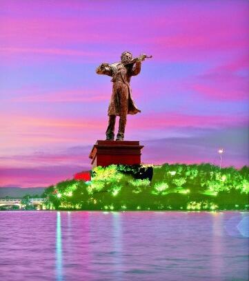 恢宏的聂耳广场,故事和现实融为一体,从空中俯瞰,你会发现聂耳伫立在一个巨大的小提琴上,英姿飒爽,仿佛在迎风演奏,浓绿葱茏中奏响着春天的和鸣。