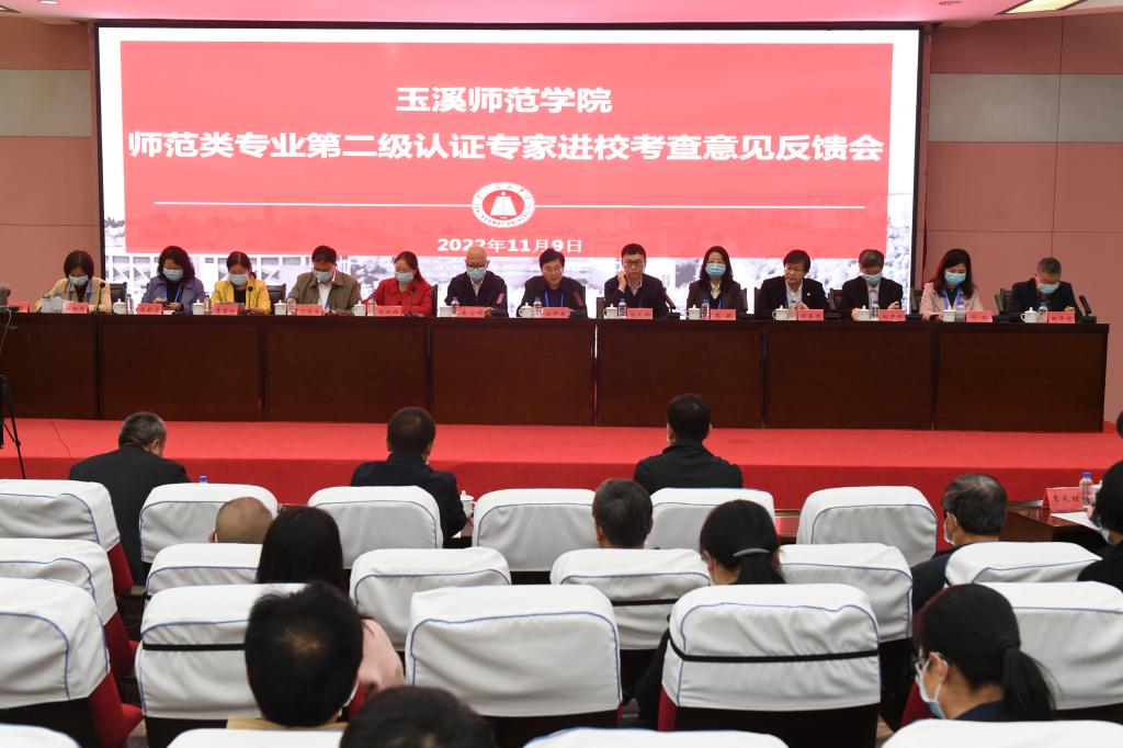11月9日,联合认证专家组组长汪开寿主持召开专家组意见反馈会。专家组全体成员,学校领导、中层干部,专家联络员,汉语言文学、英语、学前教育三个专业教师代表,化学、音乐、思想政治教育三个专业教师代表、教务处相关人员参加会议。