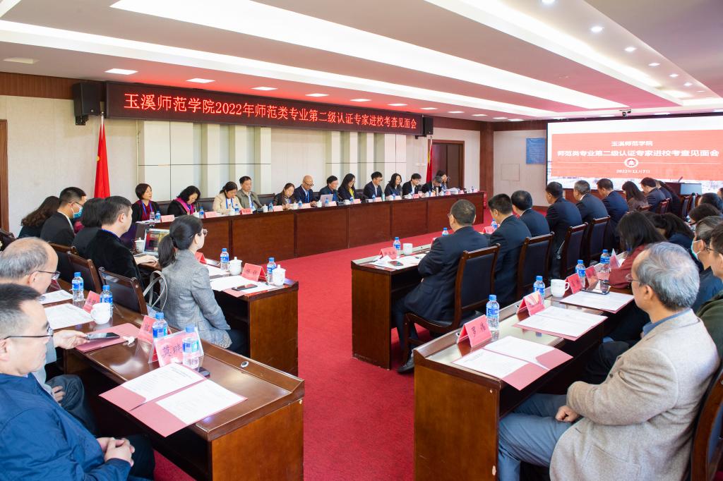 11月7日至9日,在云南省教育评估院组织下,由安徽省教育评估中心主任汪开寿研究员担任联合认证组组长兼英语专业认证组组长,云南师范大学教学督导团团长毕先均教授、浙江师范大学杭州幼儿师范学院院长朱宗顺教授分别担任汉语言文学专业、学前教育专业认证组组长,由教育部师范类专业认证评估专家库专家组成的师范类专业认证联合认证组一行19人对我校汉语言文学、英语、学前教育三个专业申请的师范类第二级认证开展联合现场考查。