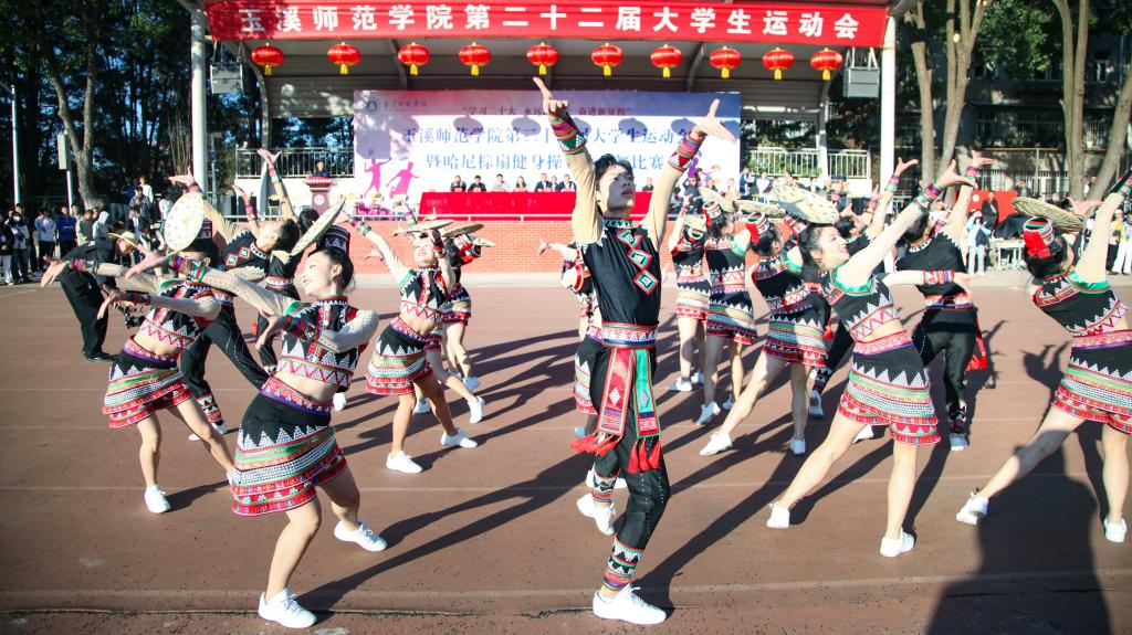 音乐学院带来的云南省第十二届少数民族传统体育运动会民族健身操银牌节目暖场表演青春洋溢,活力四射,瞬间点燃全场师生激情,大家深深被民族文化与体育运动的交织碰撞带来的独特魅力所震撼。
