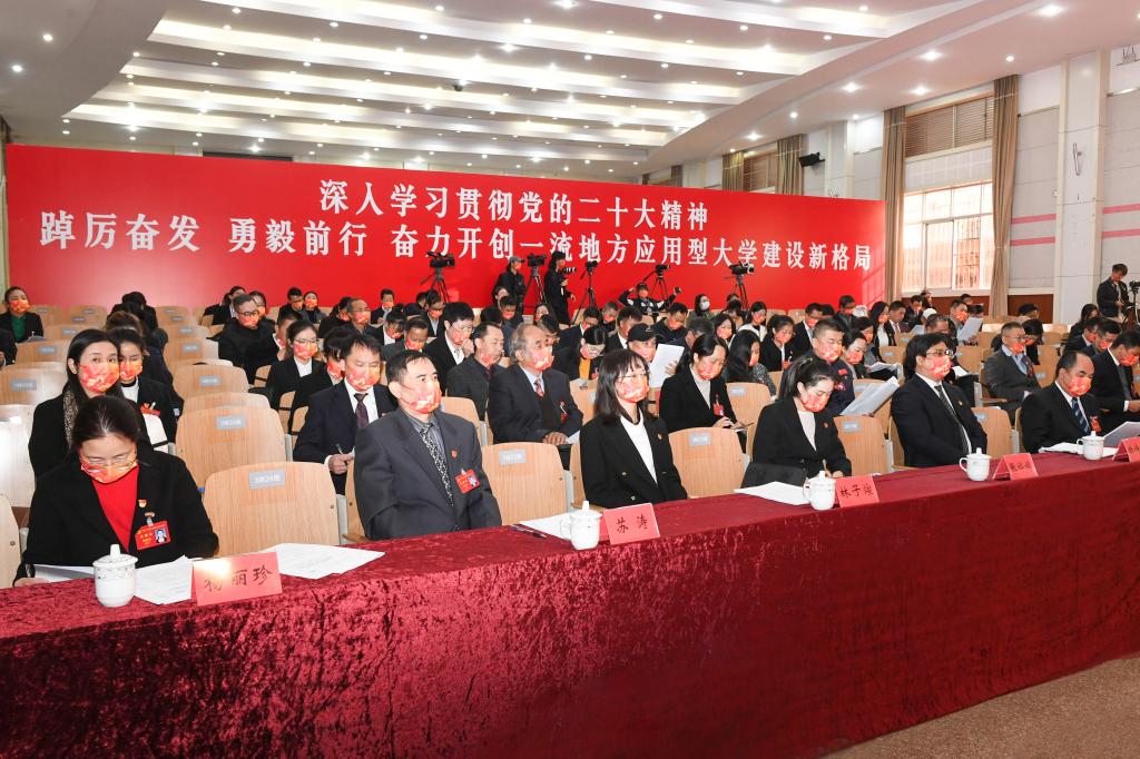 “道阻且长,行则将至,行而不辍,未来可期”。大会号召,让我们更加紧密团结在以习近平同志为核心的党中央周围,坚持用习近平新时代中国特色社会主义思想凝心铸魂,牢记习近平总书记在党的二十大报告中提出的“全党同志务必不忘初心、牢记使命,务必谦虚谨慎、艰苦奋斗,务必敢于斗争、善于斗争,坚定历史自信,增强历史主动,谱写新时代中国特色社会主义更加绚丽的华章”的要求,以永不懈怠的精神状态和砥砺前行的奋斗姿态,团结带领广大师生全力推进学校内涵式高质量发展,奋力开创一流地方应用型大学建设新格局!