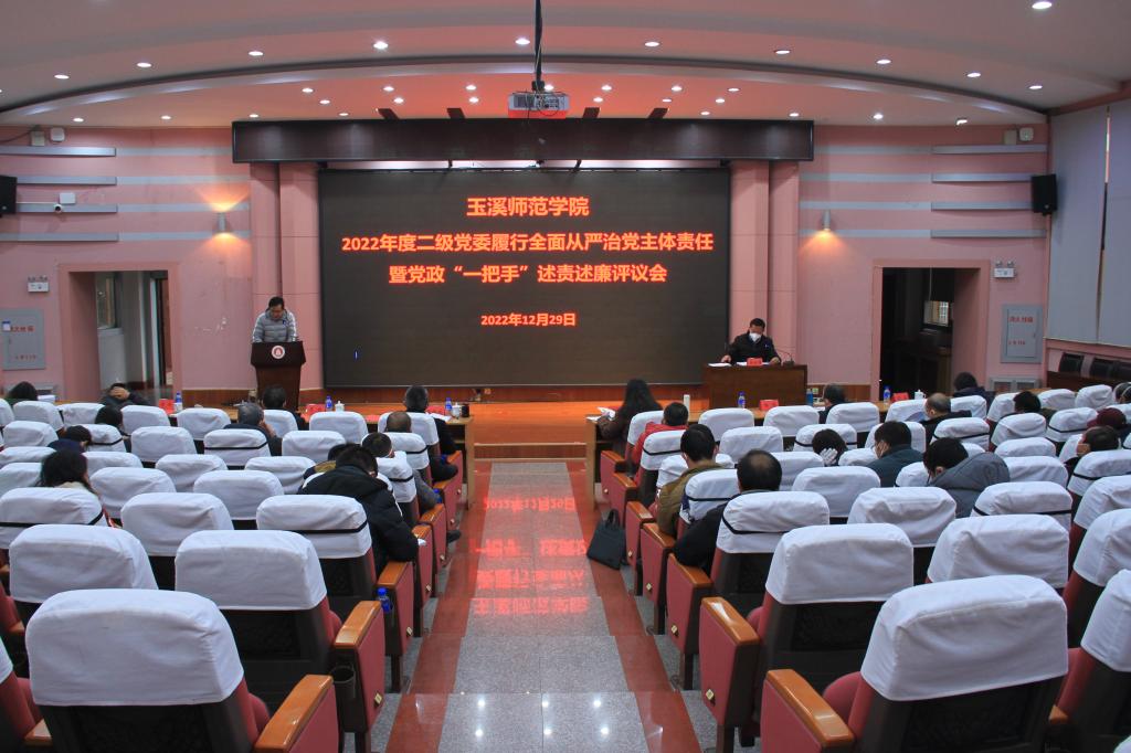 12月29日下午,学校在科学讲堂召开2022年度党组织书记抓基层党建述职评议和党政“一把手”述责述廉评议考核会。学校党政领导班子成员,二级党委书记、二级学院院长,党委工作部门主要负责人,党务干部、党代表、教代会代表、教职工代表等参加会议,校党委书记姜家雄主持会议并讲话。