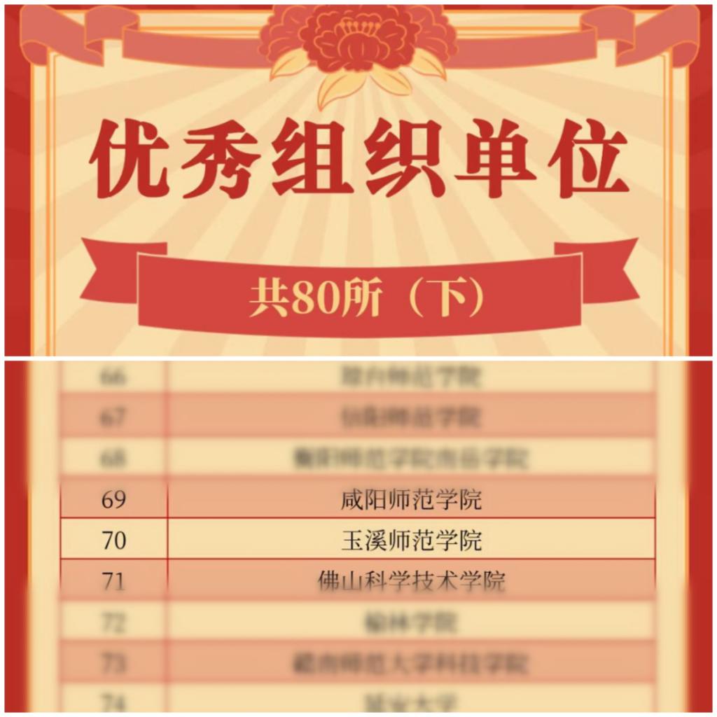 全国师范生微课大赛是由教育部陕西师范大学基础教育课程研究中心、西部师范大学教师教育创新与发展联盟从2019年开始组织举办的,2022年已经是第四届。在本届比赛中,全国共有162所高校参加比赛,本次比赛评选出80所优秀组织院校单位,我校第一次参加比赛就荣获此项殊荣。