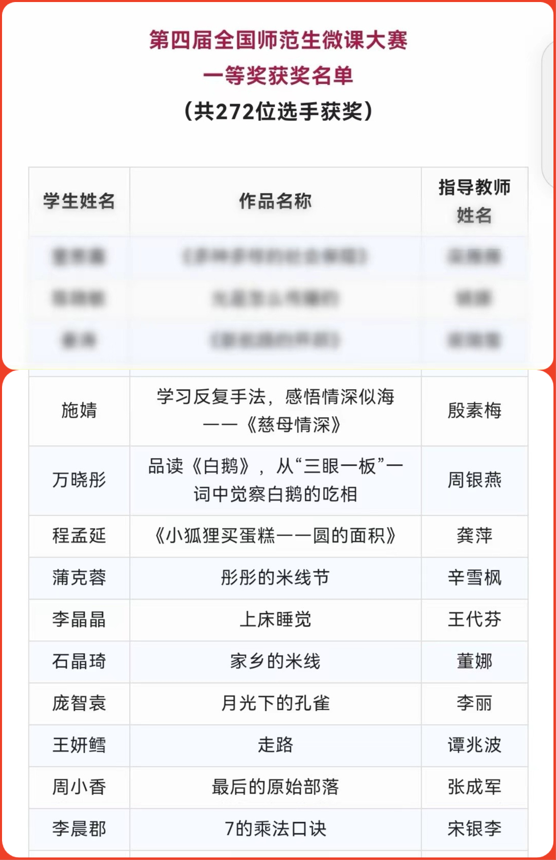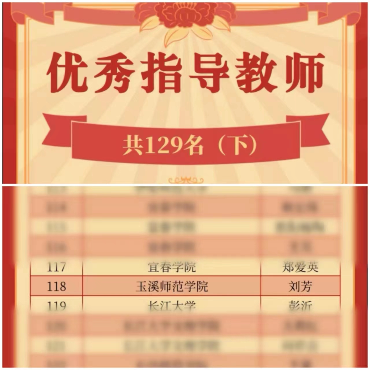 本次比赛能够取得如此优异的成绩,得益于教务处和教师教育学院领导的大力支持,以及各位指导老师的辛苦付出。本次比赛评选出129名优秀指导老师,其中我校刘芳老师荣列其中。