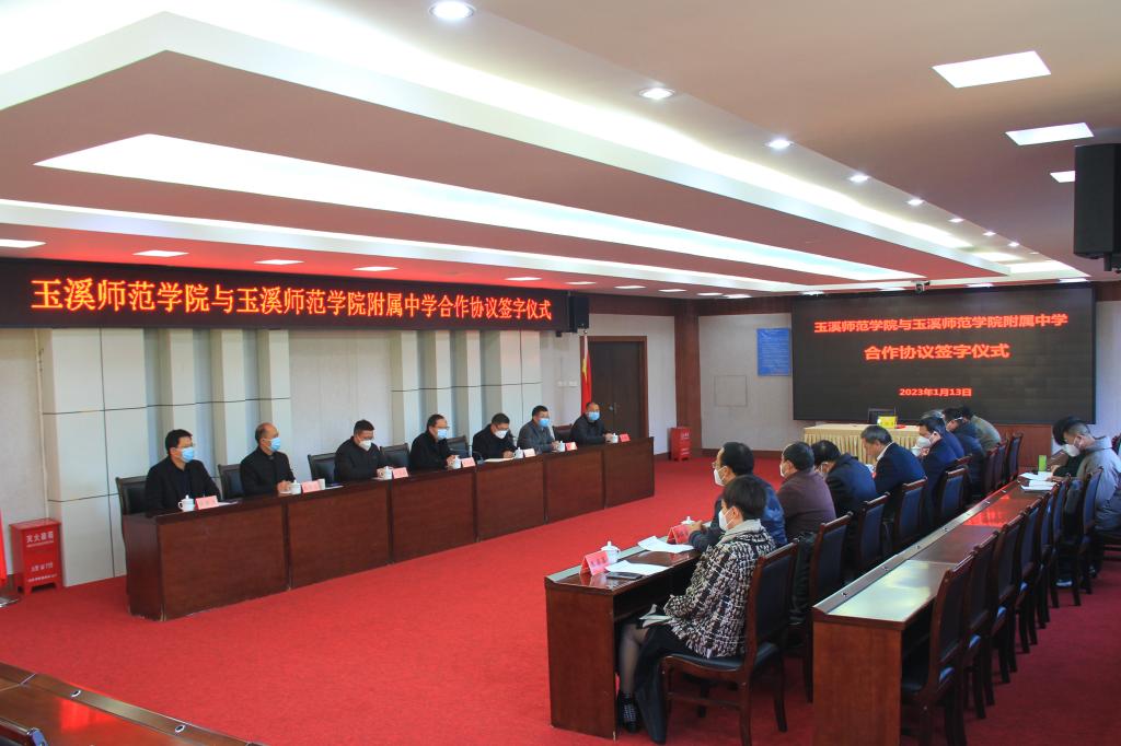 1月13日上午,学校与师院附中合作协议签署仪式在图书馆3003会议室举行,玉溪市教体局总督学黄云鹏;玉溪师范学院附属中学党委书记、校长刘建坤,党委副书记、纪委书记王敏,行政办主任张开金;玉溪师范学院党委副书记、校长段红云,副校长章新、李涛、杨伟,办公室、教务处、教师教育学院相关负责人参加签约仪式。签约仪式由章新主持。