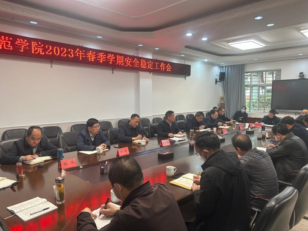 为统筹做好春季学期开学的各项工作,确保校园安全稳定和师生员工健康安全,2023年2月22日上午,学校在一办一楼会议室召开全校安全稳定工作例会。会议对师生返校工作和春季学期前两周的工作进行了安排部署,会议由校长段红云主持。学校领导、有关部门负责人、各二级学院党委书记参加会议。