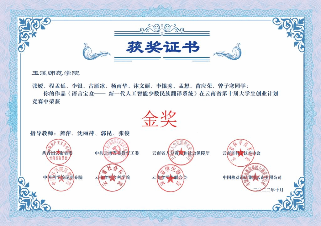 教师教育学院龚萍团队“语言宝盒—新一代人工智能少数民族翻译系统”项目获金奖