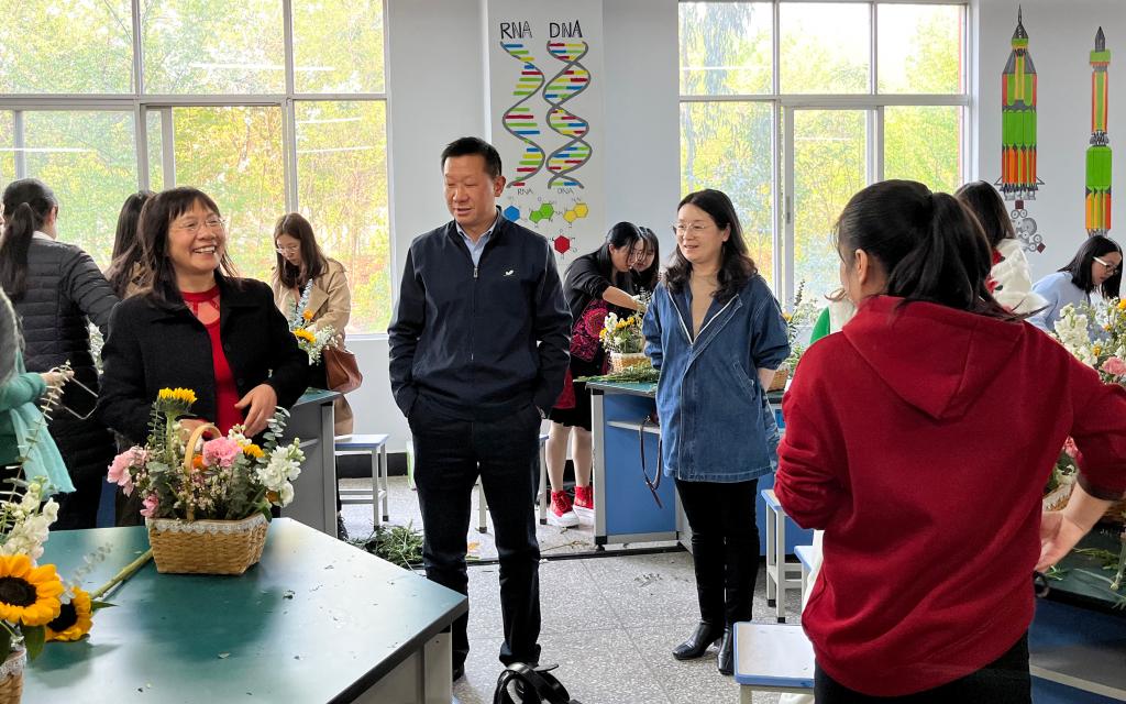 为庆祝“三八”国际劳动妇女节,学校于三月开展“巾帼建功”活动月暨“三八”国际妇女节纪念活动。3月7日下午,我校妇联、工会共同组织开展了以“花漾生活 幸福绽放”为主题的插花活动,党委书记姜家雄,党委副书记、妇联主席杨光亲临插花现场看望女教职工并致以节日的祝福与问候。