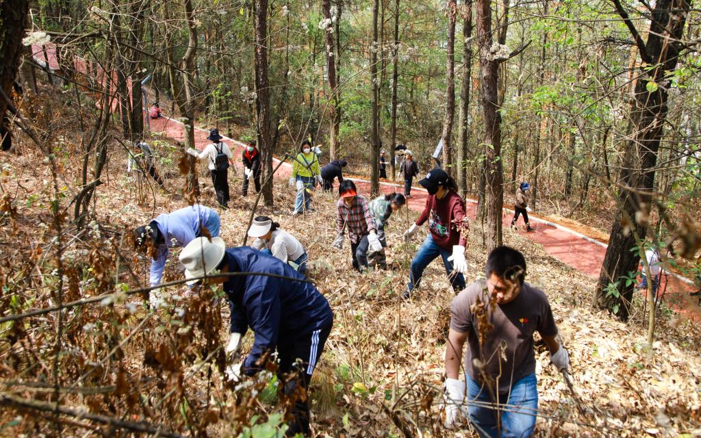 为深入贯彻落实习近平生态文明思想,用实际行动保护校园生物多样性,丰富校园植物群落层次,拓展校园绿地绿量,提升校园绿化品质,发挥环境育人功能,3月31日下午,学校领导、教师在后山开展义务植树、拔草活动。