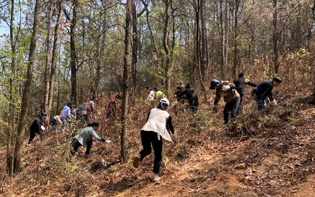 此次活动主要任务是清除后山天然林中的外来入侵物种——紫茎泽兰,并在后山健康步道起点的两侧种下新的植株。下午两点不到,老师们就早早来到现场,待学校后勤服务中心做完简单任务分解后,大家便兵分两路,开启了热火朝天的植树、拔草活动。