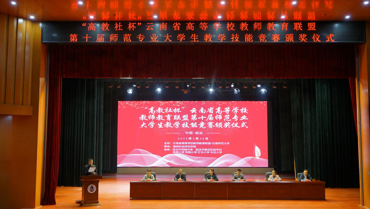 2023年3月30日,“高教社杯”云南省高等学校教师教育联盟第十届师范专业大学生教学技能竞赛颁奖礼在滇西科技师范学院落下帷幕。