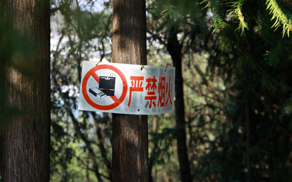 玉溪师范学院高度重视校园安全工作。“进入林区,严禁火种”,走在玉师的校园内,随处可见相关的宣传标语;在学校天然林区,“严禁烟火”标识非常醒目,时刻都在提醒师生员工提高安全意识,筑牢安全防线。