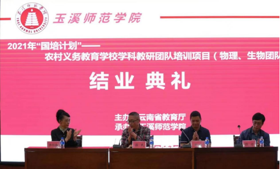 5月16日下午,由我校承办的为期近一个月的“国培计划”(2021)农村义务教育学校学科教研团队培训项目(物理、生物团队)结业典礼在科学讲堂。继续教育中心主任苗民,化学生物与环境学院院长李红梅,物理与电子工程学院院长羊波,继续教育中心副主任邵丹出席结业典礼。结业典礼由继续教育中心副主任颜鸿淋主持。