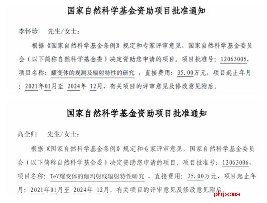 近日,国家自然科学基金委员会公布2020年度国家自然科学基金项目评审结果,玉溪师范学院物理与电子工程学院天体物理团队中李怀珍教授和高全归博士分别主持申报的2项国家自然科学基金项目获得立项资助。