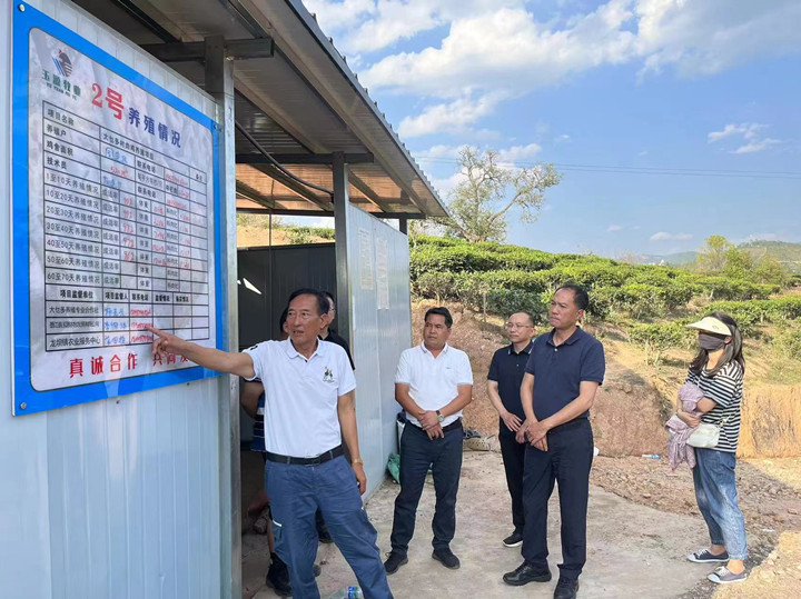 会后,张亚辉、龙坝镇相关领导、驻村新老队长实地调研了学校重点帮扶的瑶鸡养殖项目新建基地。