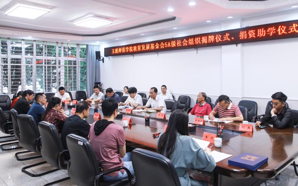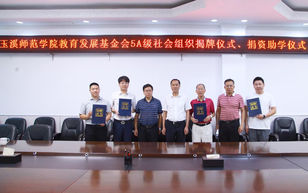 座谈结束后,张亚辉代表学校向各捐赠方颁发捐赠证书。随后,与会人员共同见证玉溪师范学院教育发展基金会“5A社会组织”等级揭牌。