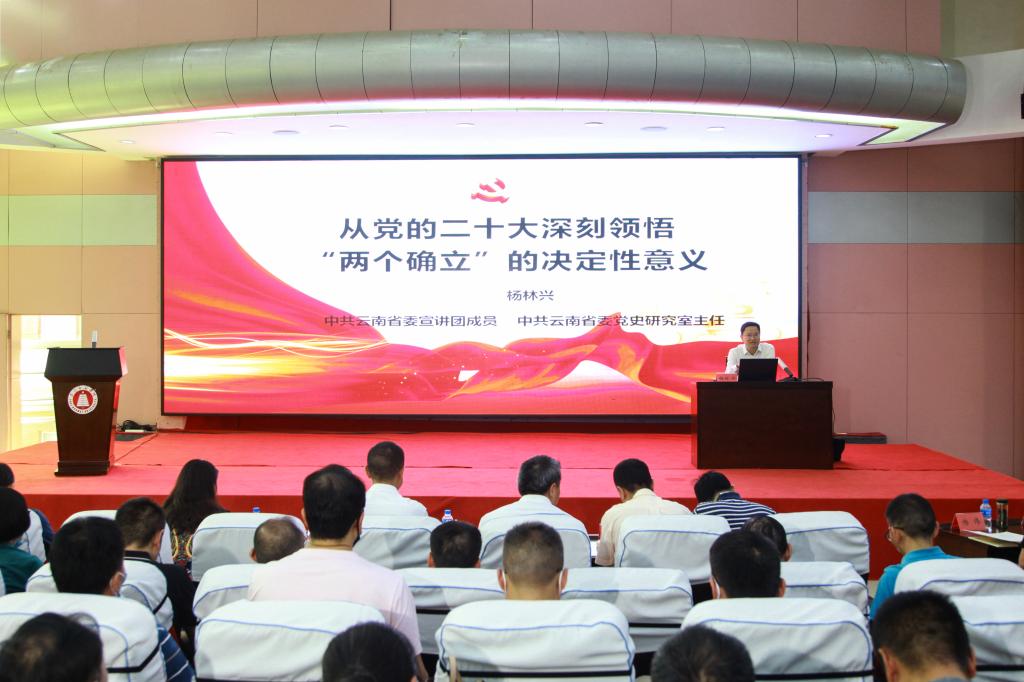 第三期主题教育读书班邀请云南省委宣讲团成员、省委党史研究室主任杨林兴以“从党的二十大深刻领悟‘两个确立’的决定性意义”为题作专题辅导,引导党员干部聚焦“学懂弄通”,紧紧围绕必读书目,全面系统学习领会党的创新理论,增强学习的理论高度和学理深度,切实推动主题教育理论学习往深里走、往实里走、往心里走。