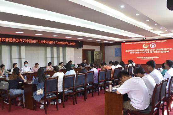 6月21日,玉溪师范学院共青团召开专题学习会,组织全校各级团组织、团干部、团员青年和青马工程学员代表及时传达学习中国共产主义青年团第十九次全国代表大会精神。与会师生集体收看电视新闻报道,原文学习传达蔡奇同志代表党中央作的题为《在强国建设民族复兴新征程上书写壮丽青春篇章》的致词,并联系个人学习工作实际展开交流研讨,分享心得体会。