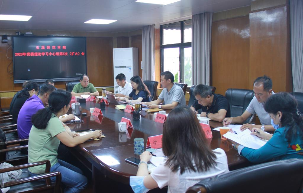 7月7日上午,玉溪师范学院在一办四楼会议室举行党委理论学习中心组第5次(扩大)会议,深入学习习近平总书记关于发扬斗争精神、应对风险挑战的重要论述,习近平法治思想,习近平在文化传承发展座谈会上发表重要讲话精神和全省深化作风革命效能革命工作会议精神。校党委理论学习中心组全体成员,副校长杨伟,党务部门主要负责人参加学习,党委书记姜家雄主持学习。