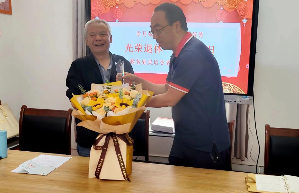 杨光、张亚辉在荣退仪式上致辞,代表学校表达了对退休教师的认可、感激、祝福,向退休教师颁发退休证书并赠送退休纪念品。