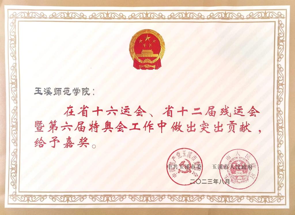 在这场全省规模最大、规格最高、竞技水平最强的综合性体育盛会中,作为玉溪唯一一所本科院校,学校将省运会备赛和志愿服务工作作为服务地方经济社会的一项重要任务,积极扛起玉师责任、展现玉师形象、传递玉师温度、贡献玉师力量,倾情服务省运会、残运会和特奥会,优质高效完成各项任务,得到组委会和社会各界的一致认可和广泛赞誉。