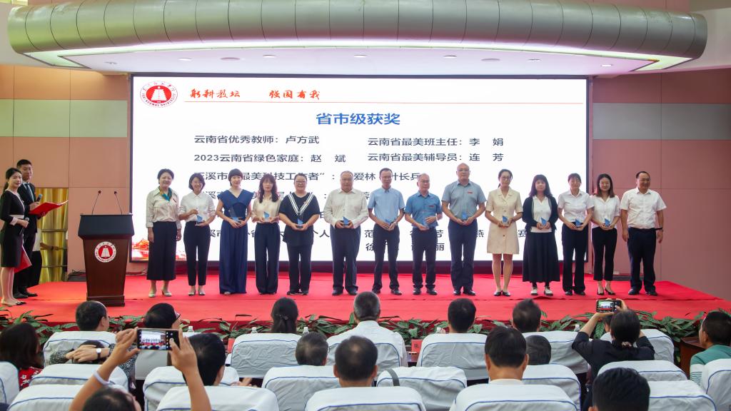 红塔园丁奖“优秀教师”“优秀辅导员”“优秀教育管理服务工作者”代表上台领奖。